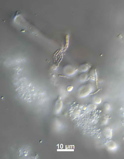 Bild EB-34-2: Hefezellen und eine Pilzhyphe